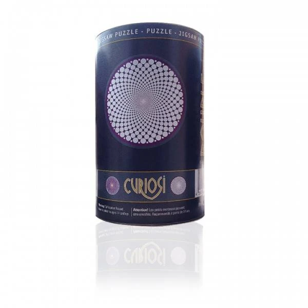 Een heerlijk lastig puzzelplezier. De 2 gelijkaardige motieven op de voor- en achterkant, de ronde verpakking met 2 lichtmetalen deksels maken deze puzzel een leuk en uitdagend cadeau.