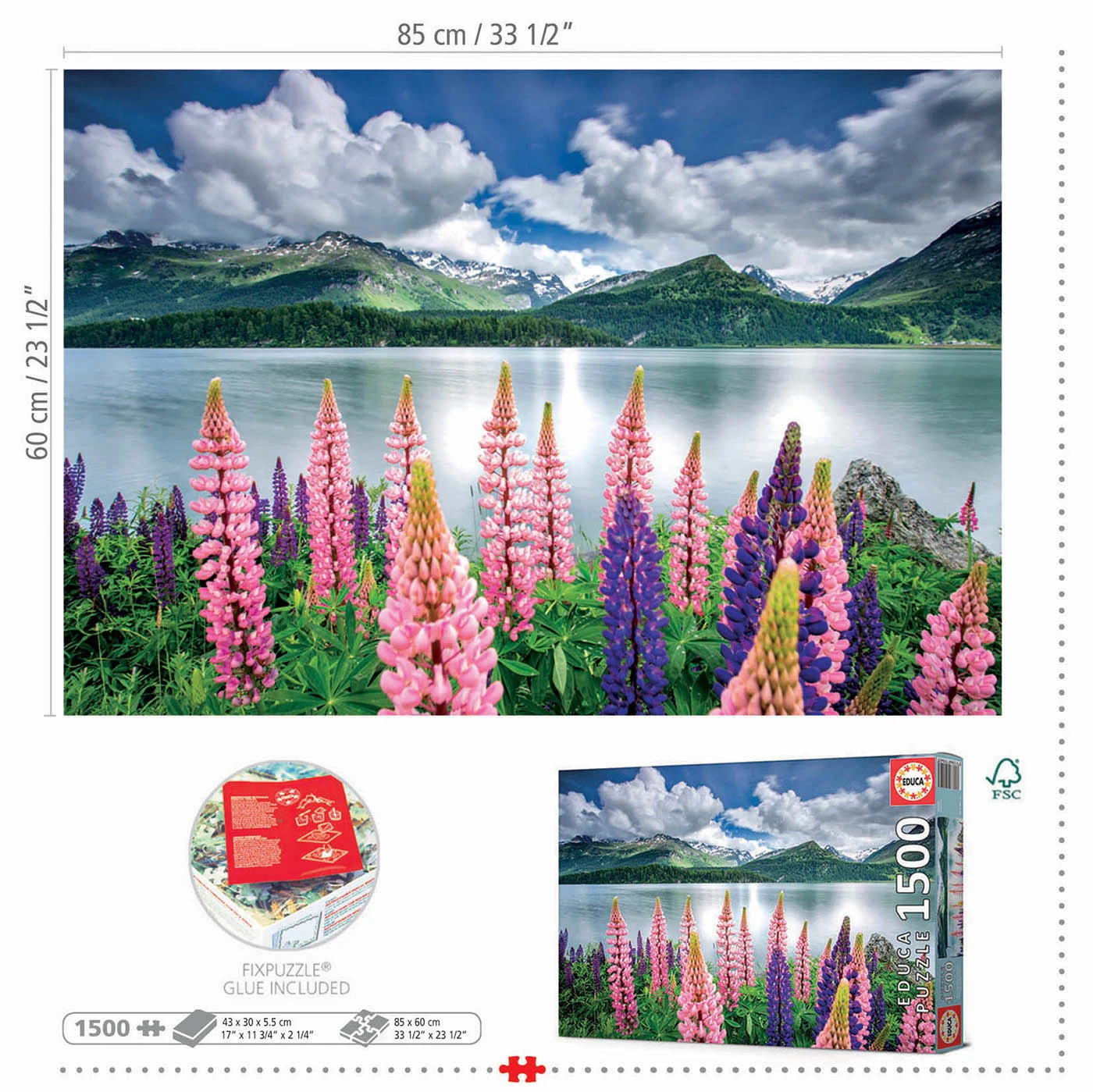 Lupines aan de oever van de Silsersee, Zwitserland – Legpuzzel van 1500 stukjes – Educa – 19271