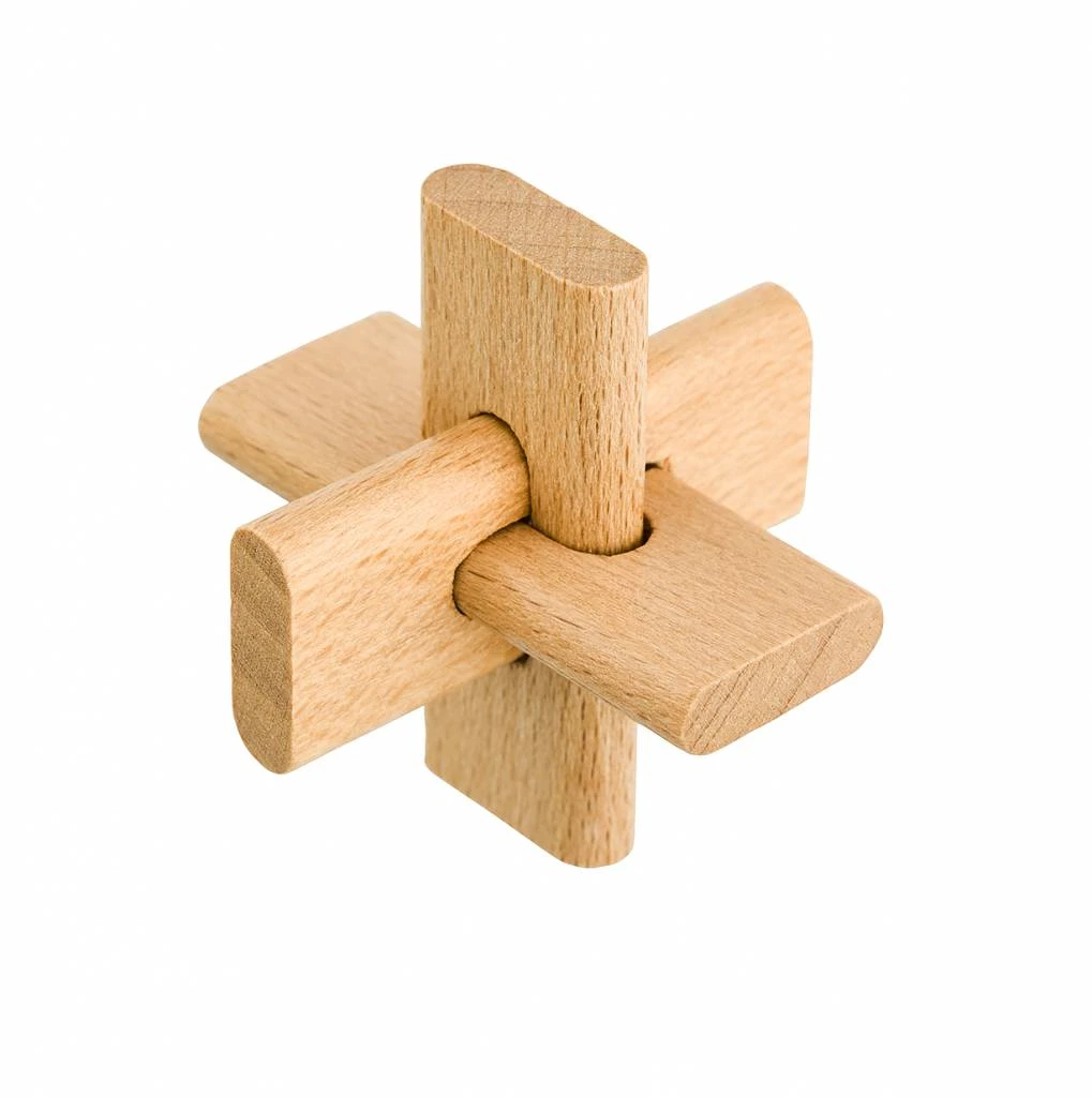 Kwalitatieve breinbreker, met hout en touw. Kan jij ze uit elkaar halen en weer in elkaar steken?