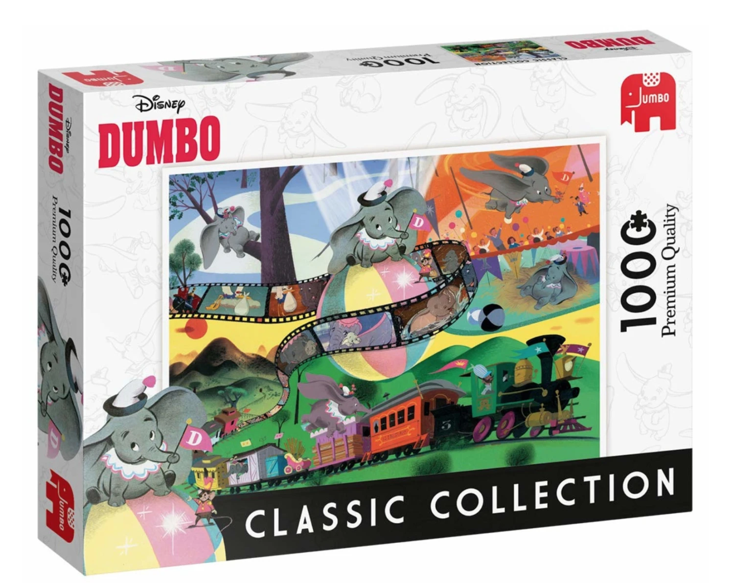 Een klassieke afbeelding van Dumbo, nu beschikbaar in puzzelformaat van 1000 stukjes. De Disney Classic Collection verzamelt de mooiste nostalgische Disney-afbeeldingen.Â