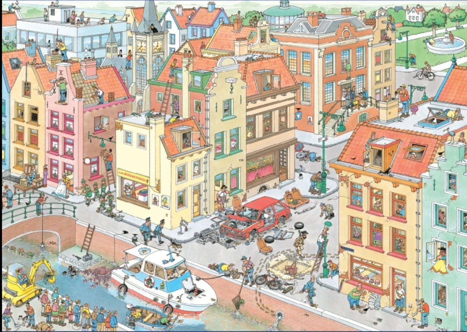De kunstenaar Jan van Haasteren is de favoriete tekenaar van vele puzzelaars! Zijn typische elementen zoals de haaienvin, de losse tanden zijn terug te vinden op al zijn puzzels. Al gevonden op deze foto?
