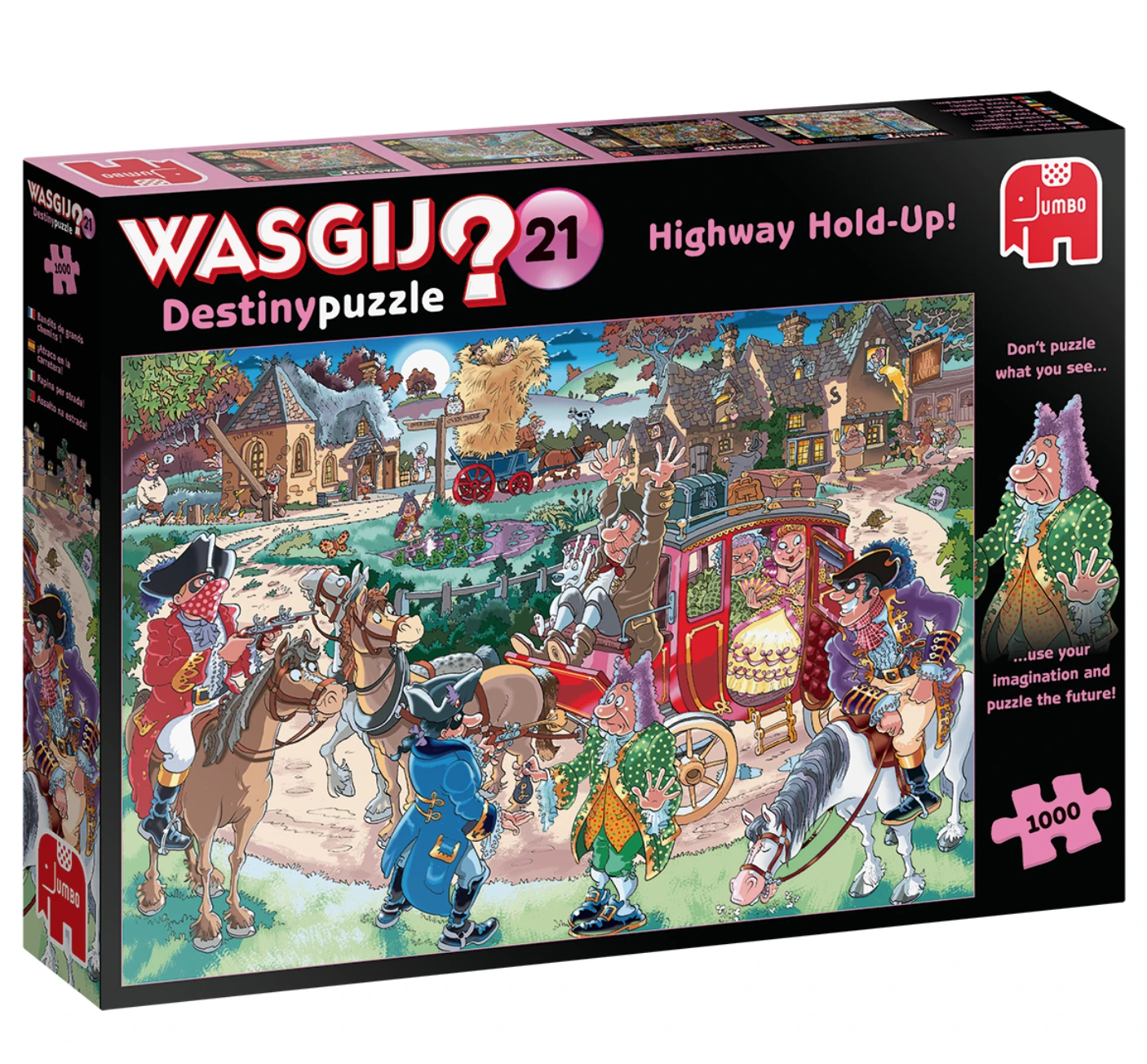 Met de puzzels van ‘Wasgij Destiny’ mag je gaan ‘reizen in de tijd’. Je puzzelt niet de tekening die op de doos staat. Maar gebruik je verbeelding en bedenk zelf hoe deze personages en deze locatie er vandaag zouden uitzien! Wat is er in onze moderne tijd anders dan toen? Een andere manier van puzzelen!