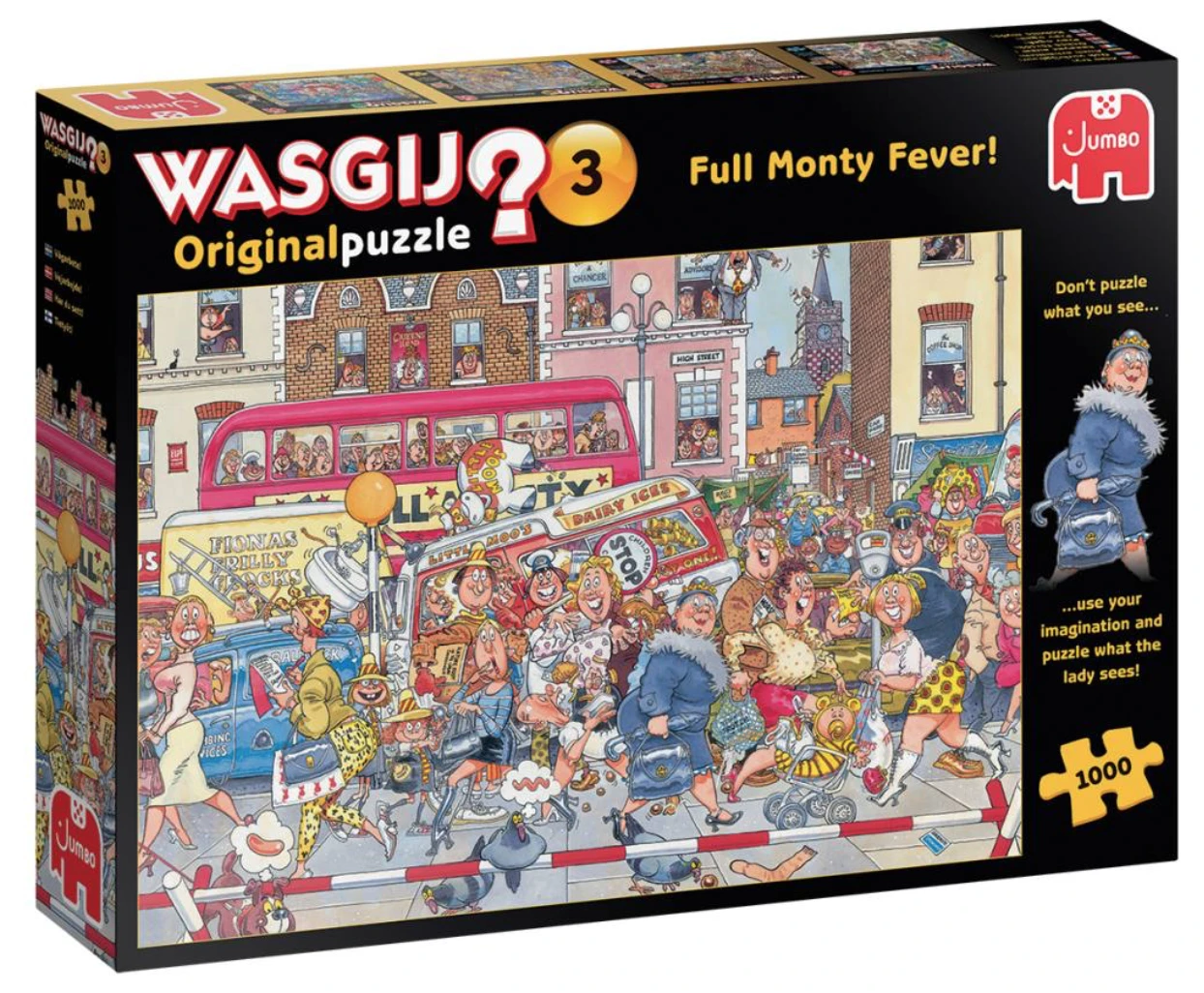Bij de ‘Wasgij Original’-puzzels, puzzel je niet de tekening die op de doos staat. Gebruik je verbeelding en puzzel wat de man in de jeep ziet! Waar kijkt hij naar?