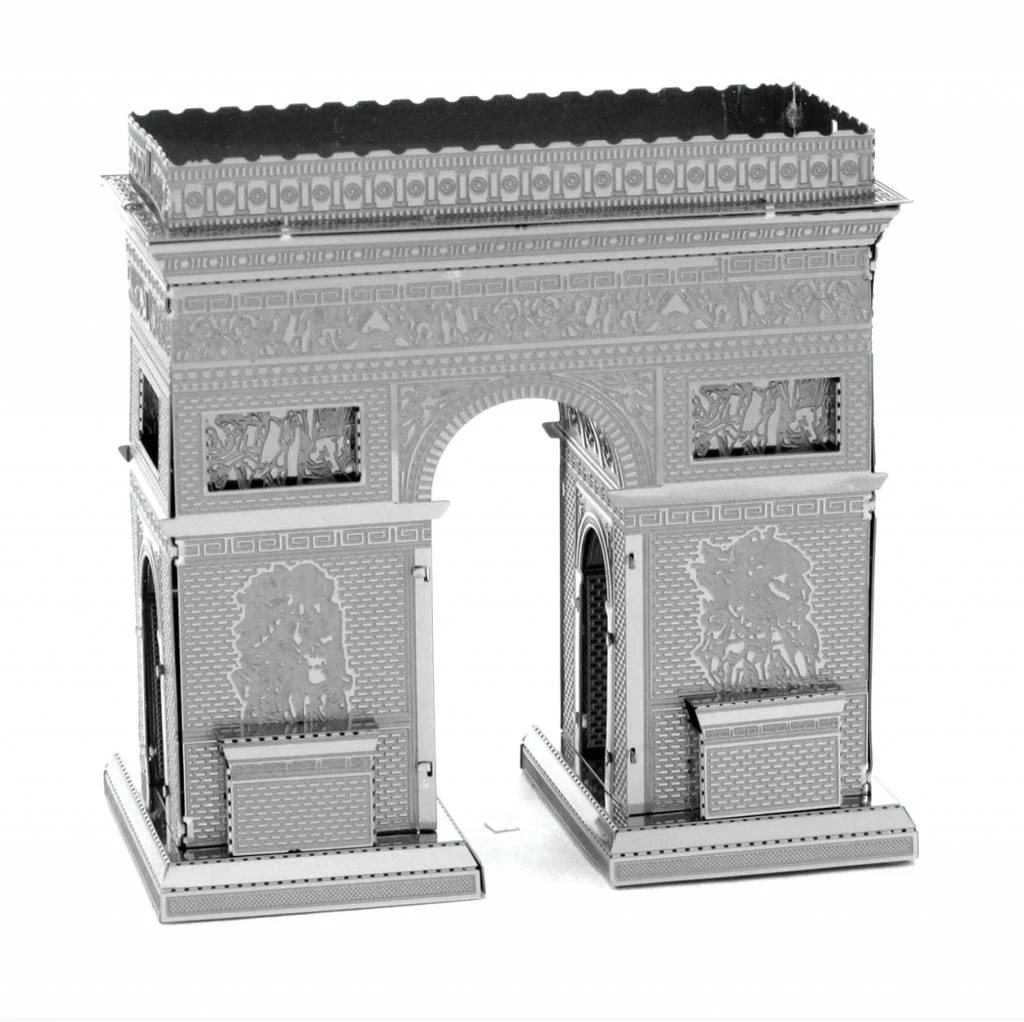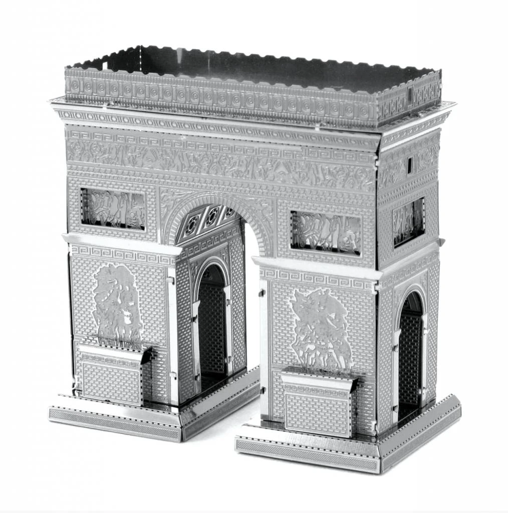 De Arc de Triomphe bestaat uit 2 dunne metalen vellen. Haal eerst alle voorgesneden onderdelen uit het metalen vel, door te knippen, te plooien of te draaien. Vervolgens kan je beginnen puzzelen. Plooi de onderdelen in de juiste vorm; zet 2 stukjes aan elkaar door lipjes of pinnetjes door een gleufje te schuiven, door te plooien,… Je kan dit model volledig in elkaar zetten zonder lijm! Een fijne knip- en punttang is wel handig om te gebruiken! In de verpakking staan de handige instructies steeds stap voor stap uitgelegd.