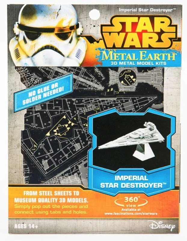 De Imperial Star Destroyer bestaat uit 2 dunne metalen vellen. Haal eerst alle voorgesneden onderdelen uit het metalen vel, door te knippen, te plooien of te draaien. Vervolgens kan je beginnen puzzelen. Plooi de onderdelen in de juiste vorm; zet 2 stukjes aan elkaar door lipjes of pinnetjes door een gleufje te schuiven, door te plooien,… Je kan dit model volledig in elkaar zetten zonder lijm! Een fijne knip- en punttang is wel handig om te gebruiken! In de verpakking staan de handige instructies steeds stap voor stap uitgelegd.