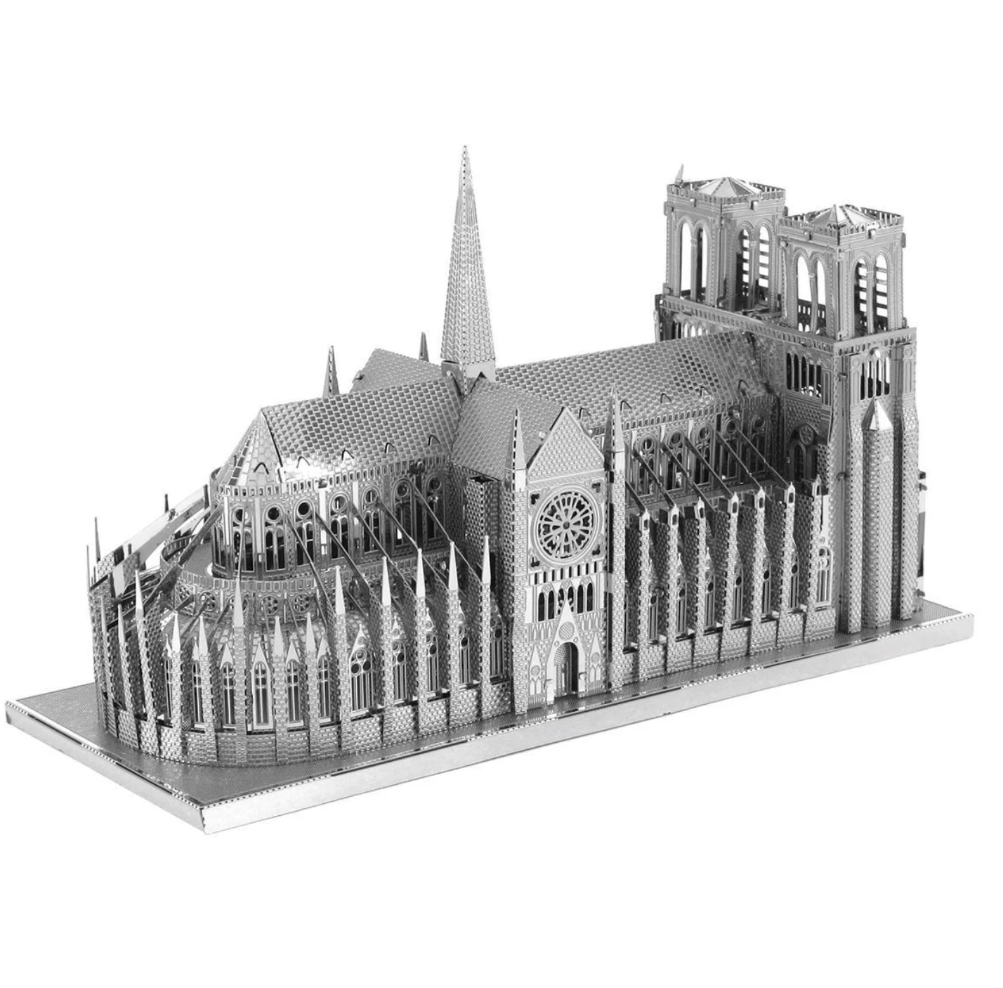De Notre Dame bestaat uit 2 dunne metalen vellen. Haal eerst alle voorgesneden onderdelen uit de metalen vellen, door te knippen, te plooien of te draaien. Vervolgens kan je beginnen puzzelen. Plooi de onderdelen in de juiste vorm; zet 2 stukjes aan elkaar door lipjes of pinnetjes door een gleufje te schuiven, door te plooien,… Je kan dit model volledig in elkaar zetten zonder lijm! Een fijne knip- en punttang is wel handig om te gebruiken! In de verpakking staan de handige instructies steeds stap voor stap uitgelegd.