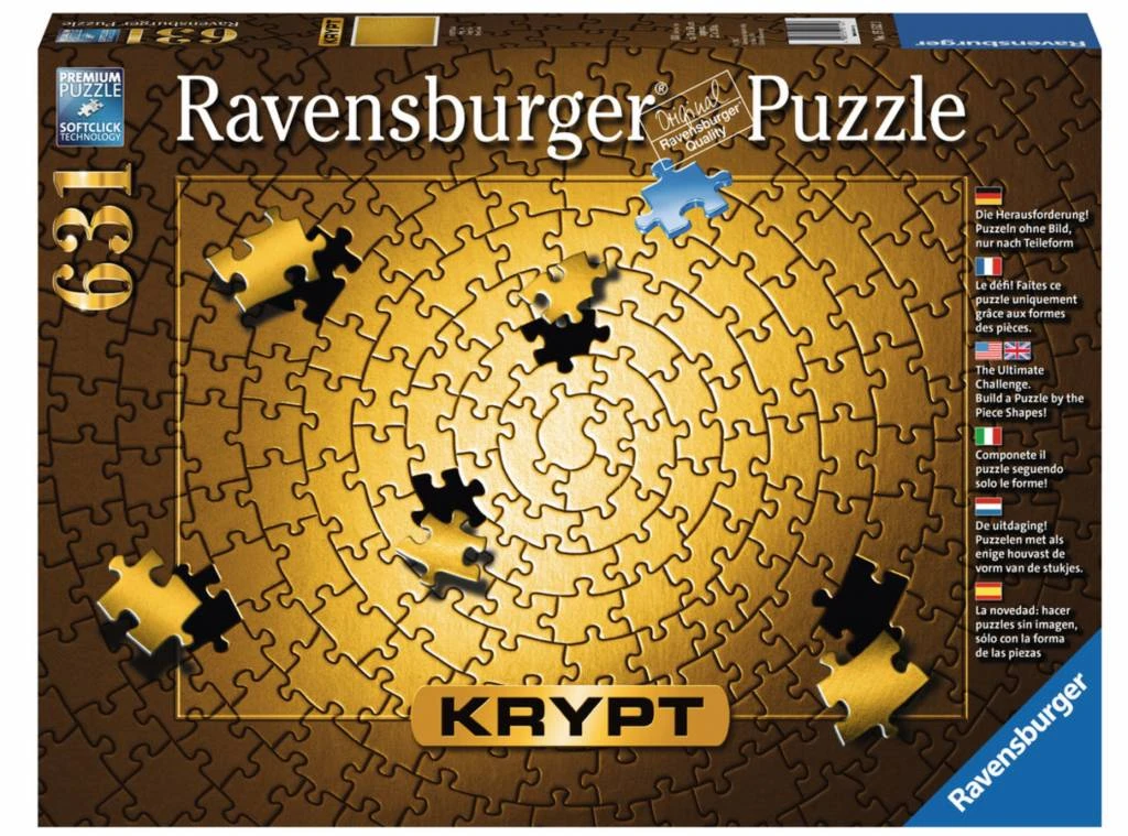 KRYPT is de ultieme uitdaging voor alle puzzelaars. Er is géén afbeelding, enkel 631 goudkleurige stukjes met een unieke vorm.
