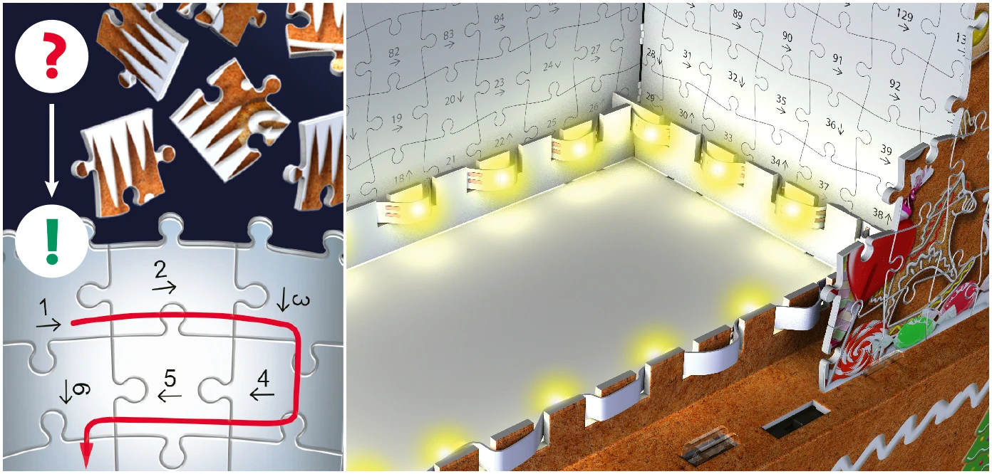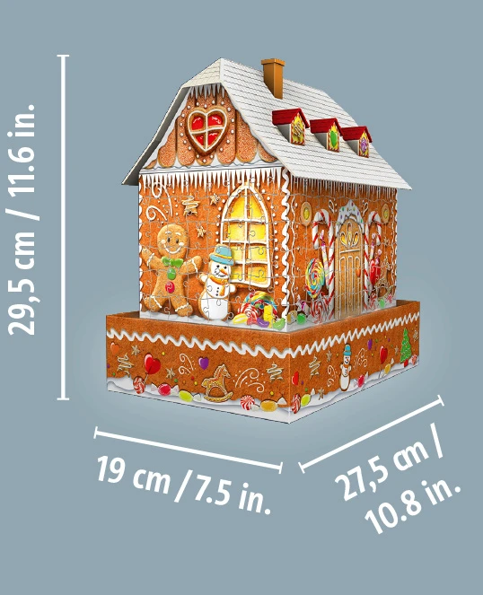 De 3D puzzels van Ravensburger maken gebruik van de Premium ‘Easy Click’ technologie. De puzzelstukjes zijn mooi stevig en bezorgen je een stabiel 3D kunstwerk! De verlichting voor het huisje zitten ook gewoon mee in de verpakking!
